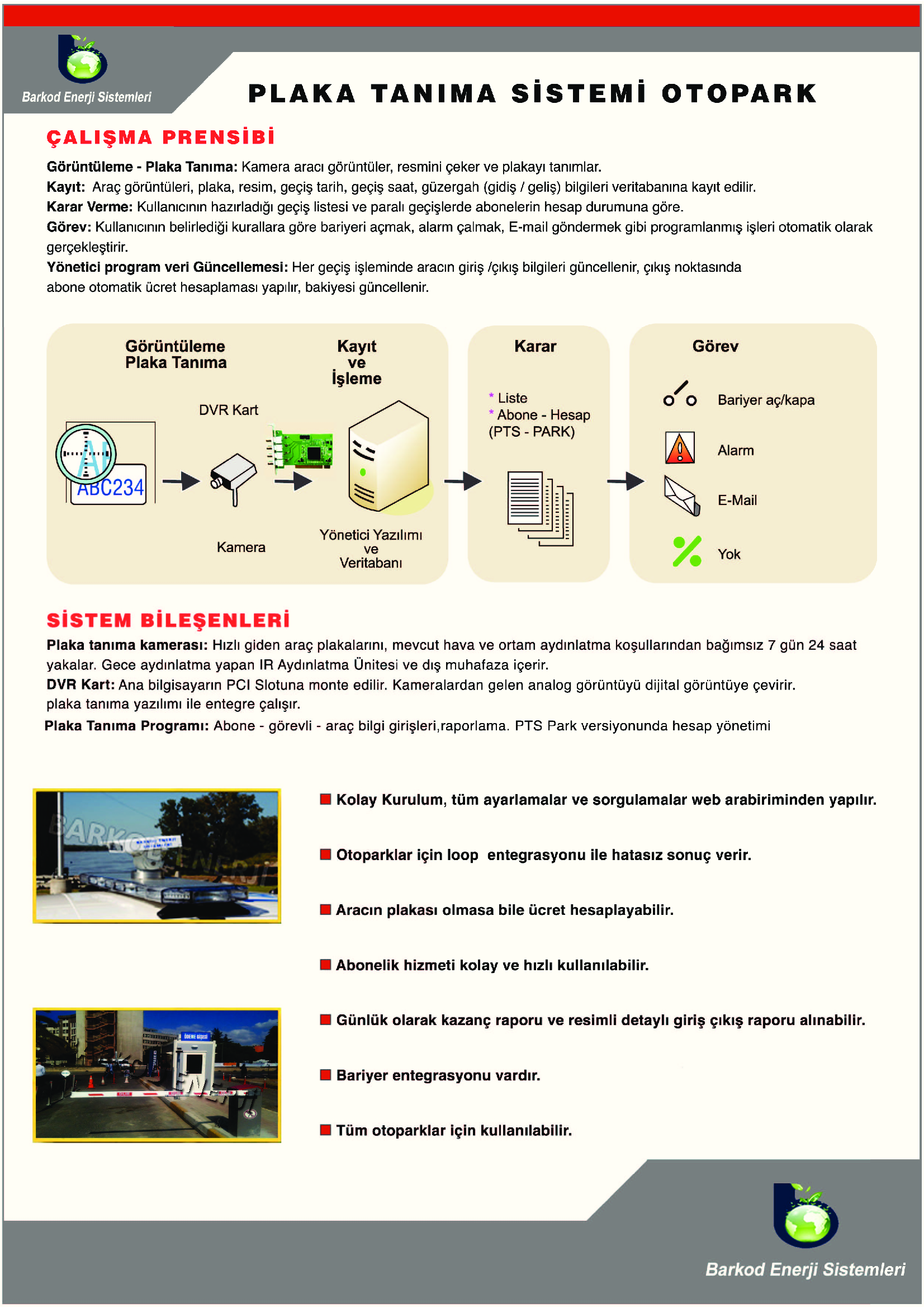 PLAKA TANIMA SİSTEMİ, TAŞITLARI (OTOMOBİL, OTOBÜS, KAMYON VB.) PLAKALARINA BAKARAK İNSANSIZ OLARAK TANIYAN BİR UYGULAMADIR. PLAKALARI TANIMAK İÇİN KAMERA İLE GELEN GÖRÜNTÜLERİ KULLANDIĞINDAN DOLAYI, PLAKA TANIMA SİSTEMİ BİR GÖRÜNTÜ TANIMA TEKNOLOJİSİDİR SİTE OTOPARKLARI, TİCARİ OTOPARKLAR, KARAYOLLARI VE GÜVENLİK KONTROL NOKTALARI GİBİ BİRÇOK NOKTADA KULLANILAN PLAKA TANIMA SİSTEMİ, GİRİŞ ÇIKIŞLAR ÜZERİNDE DAHA YÜKSEK KONTROL VE DENETİM SAĞLAR.